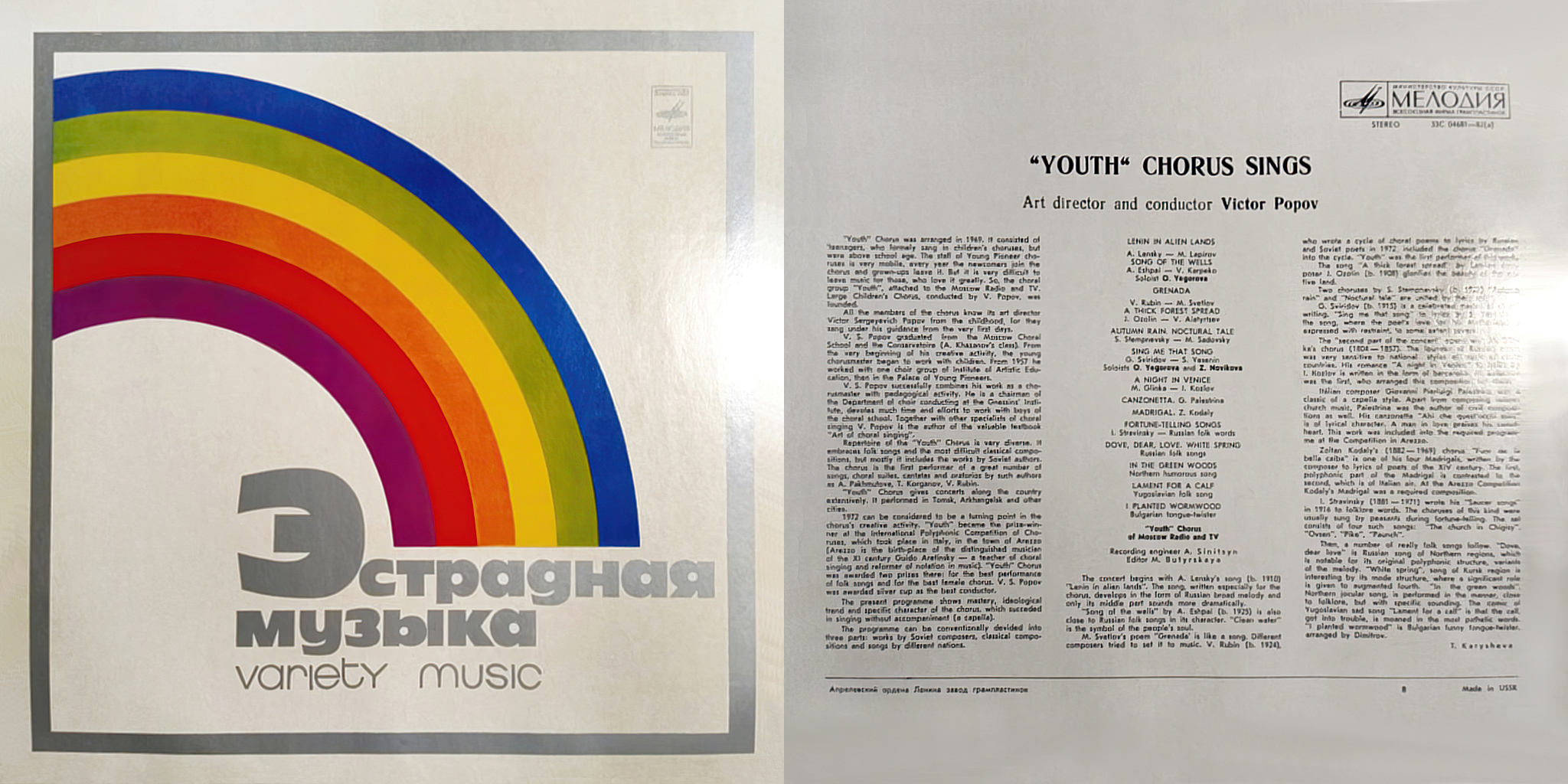 Программа как бы делится на три раздела: произведения советских композиторов, классика и песни разных народов.
