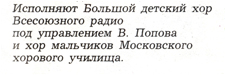 Хор указан как «Большой детский хор Всесоюзного радио под управлением В. Попова».