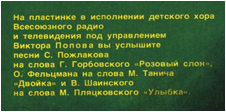 Хор указан в журнале как «Детский хор Всесоюзного радио и телевидения под управлением Виктора Попова».