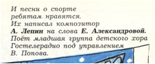 На второй стороне второй пластинки под рубрикой «Жила-была песенка» записаны мини-интервью журналистки Ольги Терентьевой с детьми об их занятиях спортом. По ходу беседы звучат три песни в исполнении младшей группы БДХ.
