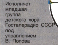 Хор в журнале указан как «Детский хор Гостелерадио СССР под управлением В. Попова».