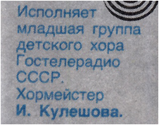 Хор в журнале указан как «Детский хор Гостелерадио СССР, хормейстер И. Кулешова».